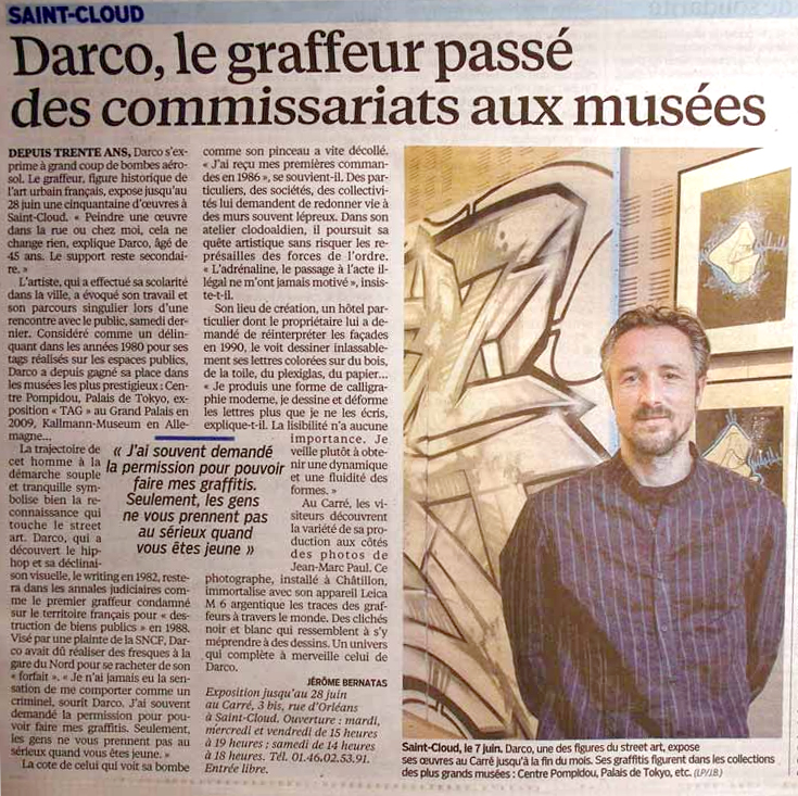Samedi 7 juin 2014 les artistes Darco et Jean-Marc Paul ont proposé une visite guidée de l’exposition Expressions libres. Ce temps d’échanges a été suivi d’une séance de dédicace du livre Code Art de Darco. L’article du Parisien (édition des Hauts-de-Seine) du 11 juin 2014 propose une mise au point sur la trajectoire artistique de Darco.