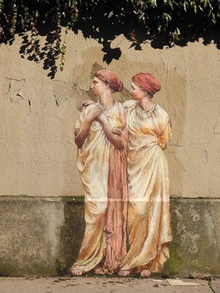 Un pan important de sa démarche est orienté vers l’art de rue : elle intègre des figures issues de la peinture classique à échelle humaine dans un environnement urbain (sous un pont, sur la vieille porte d’une maison abandonnée, dans le métro, etc.). Le choix du lieu, souvent repéré en amont, dépend de l’ambiance qu’il dégage et de l’histoire qui pourra en émerger.