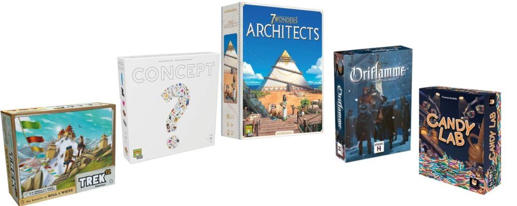 Les soirées jeux reviennent à l’ECLA avec au programme 5 jeux à découvrir présentés par nos animateurs Jérémy et Nicolas : Candy lab, Concept, Oriflamme, 7 wonders architects et Trek12.