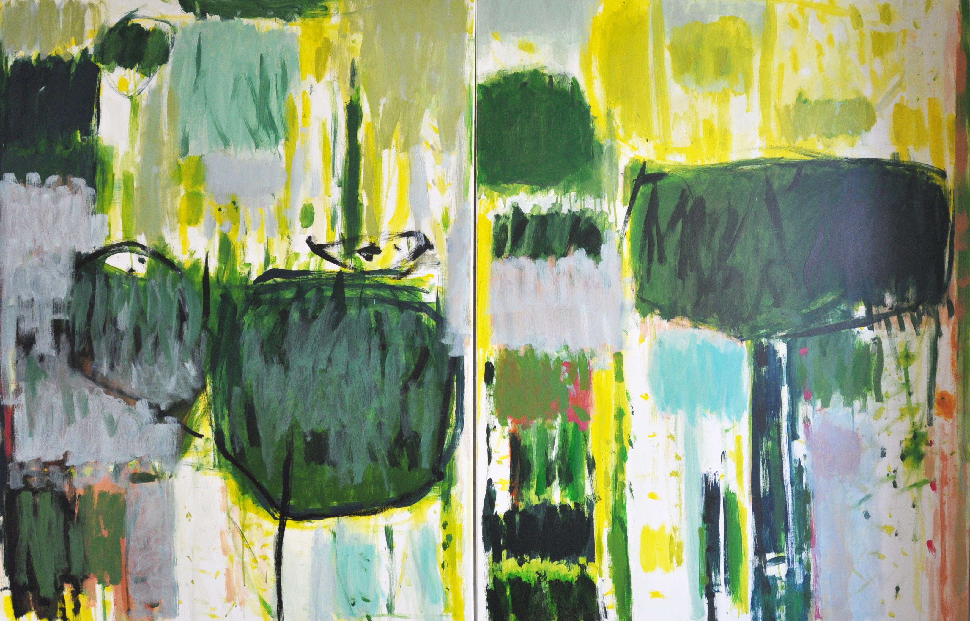 Ci-dessus : Topazes, 2015, bombe aérosol et acrylique sur kraft, 190 x 80 cm. D’après Albert Moore, Topaz © Nadège Dauvergne
