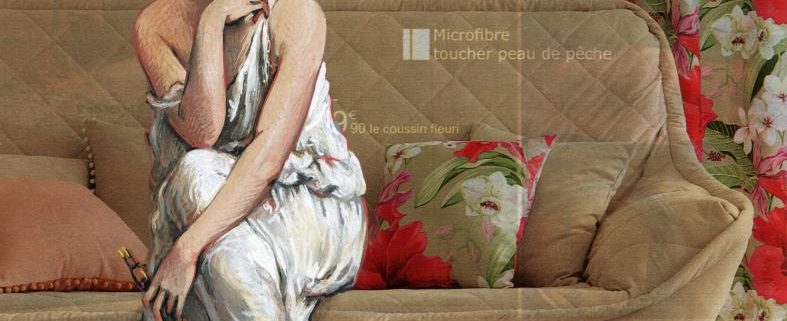 De formation académique, l’artiste intervient directement sur des supports publicitaires en dessinant des personnages issus de la peinture classique qu’elle intègre à un décor contemporain. Ce double détournement questionne, non sans humour, nos pratiques consuméristes.